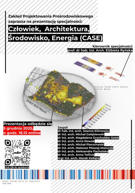 Specjalność CASE - Człowiek, Architektura, Środowisko, Energia zaprasza na spotkanie informacyjne, które odbędzie się 5 grudnia o godz. 18:15 online: LINK