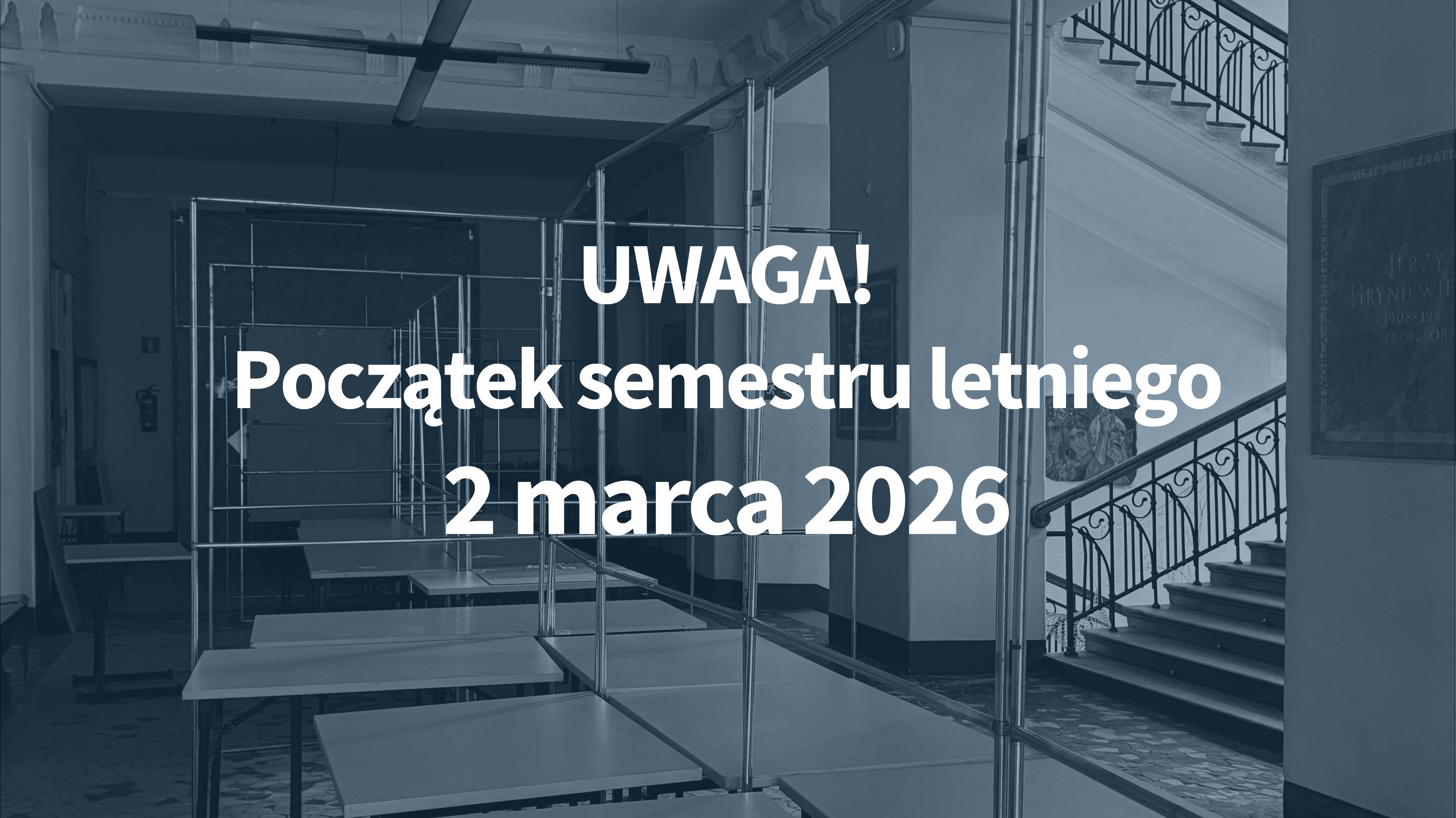 Ze względu na w prace remontowe zajęcia na naszym Wydziale rozpoczynają się w semestrze letnim w dniu 2 marca 2026.