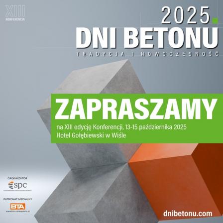 Zapraszamy do udziału w XIII Konferencji Dni Betonu, która odbędzie się w dniach 13-15 października 2025 w hotelu Gołębiewski w Wiśle.