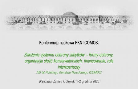 Zapraszamy do udziału w konferencji naukowej PKN ICOMOS pt. Założenia systemu ochrony zabytków – formy ochrony, organizacja służb konserwatorskich, finansowanie, rola interesariuszy, która odbędzie się w dniach 1-2 grudnia 2025 w Zamku Królewskim w Warszawie.